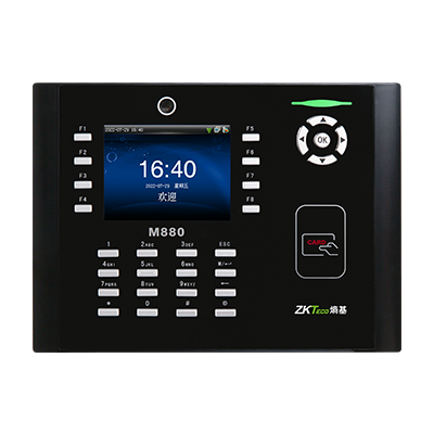 M880是熵基科技 2009年5月推出的一款3.5英寸彩屏带拍照功能的射频卡考勤门禁一体机,该款产品增加了摄像头功能,内置130万像素高清摄像头,可以轻松实现员工照片拍摄和显示,标配高级门禁功能,标准的TCP/IP通讯,和网络无缝连接用户可自定义的定时响铃和其高贵典雅的外观设计,是您管理必备的“伙伴”
